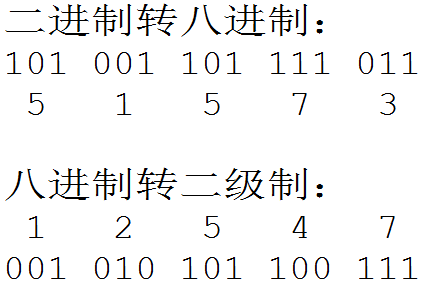 - 八进制的数和二进制数可以按位对应(八进制一位对应二进制三位),因此常应用在计算机语言中