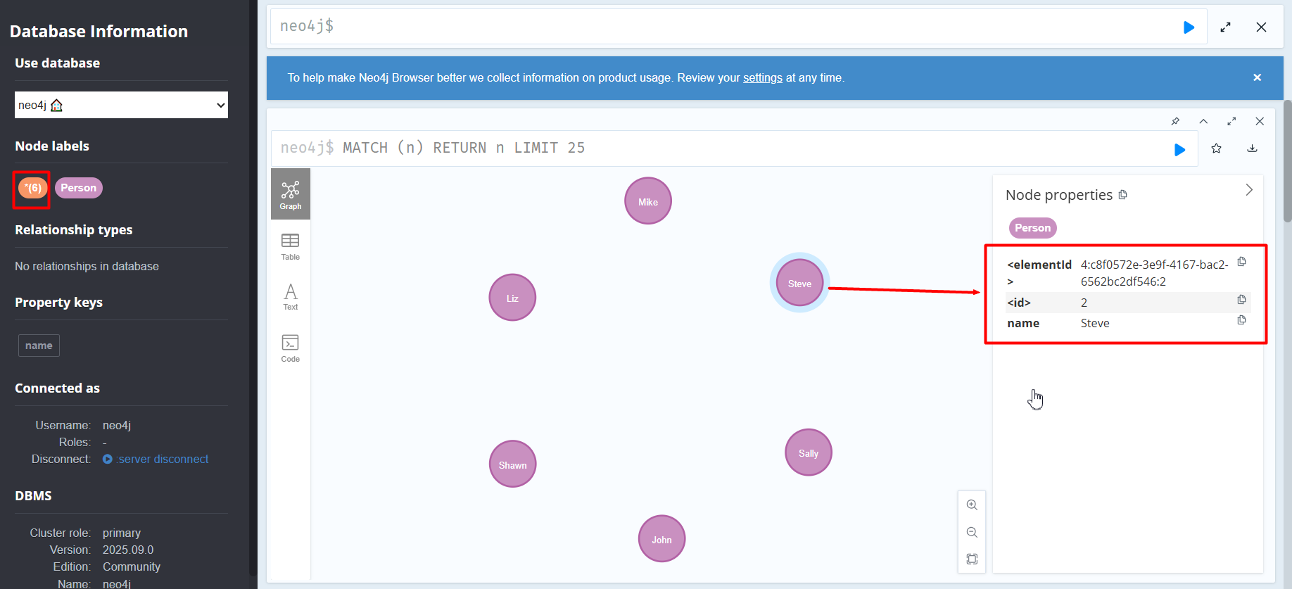 CREATE (n:Person {name:'Steve'}) RETURN n;