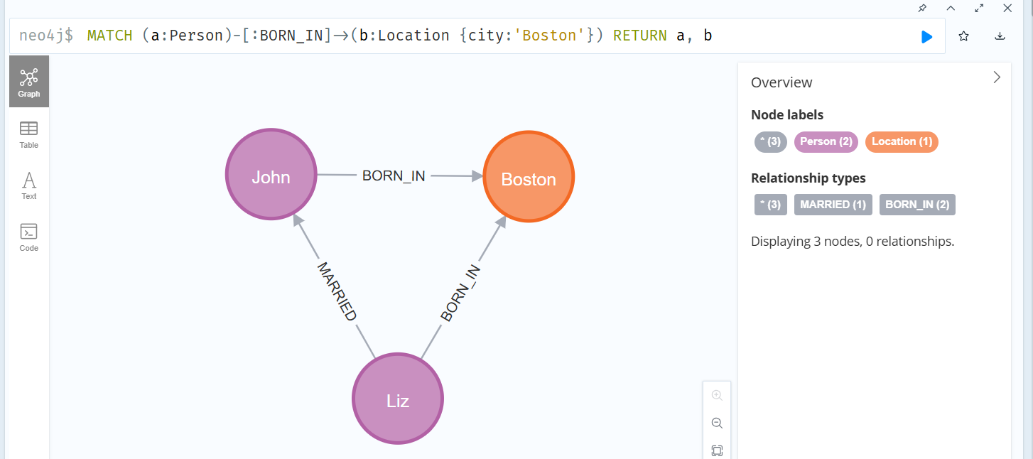 MATCH (a:Person)-[:BORN_IN]->(b:Location {city:'Boston'}) RETURN a, b